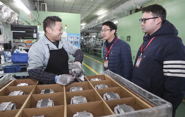 江苏省淮安经开区党工委巡察机构将推动优化营商环境作为监督重点,着力发现项目审批、政策兑现、要素保障等关键环节存在的问题。图为近日,该开发区党工委巡察干部在当地某企业了解惠企政策落实情况。朱益川 摄