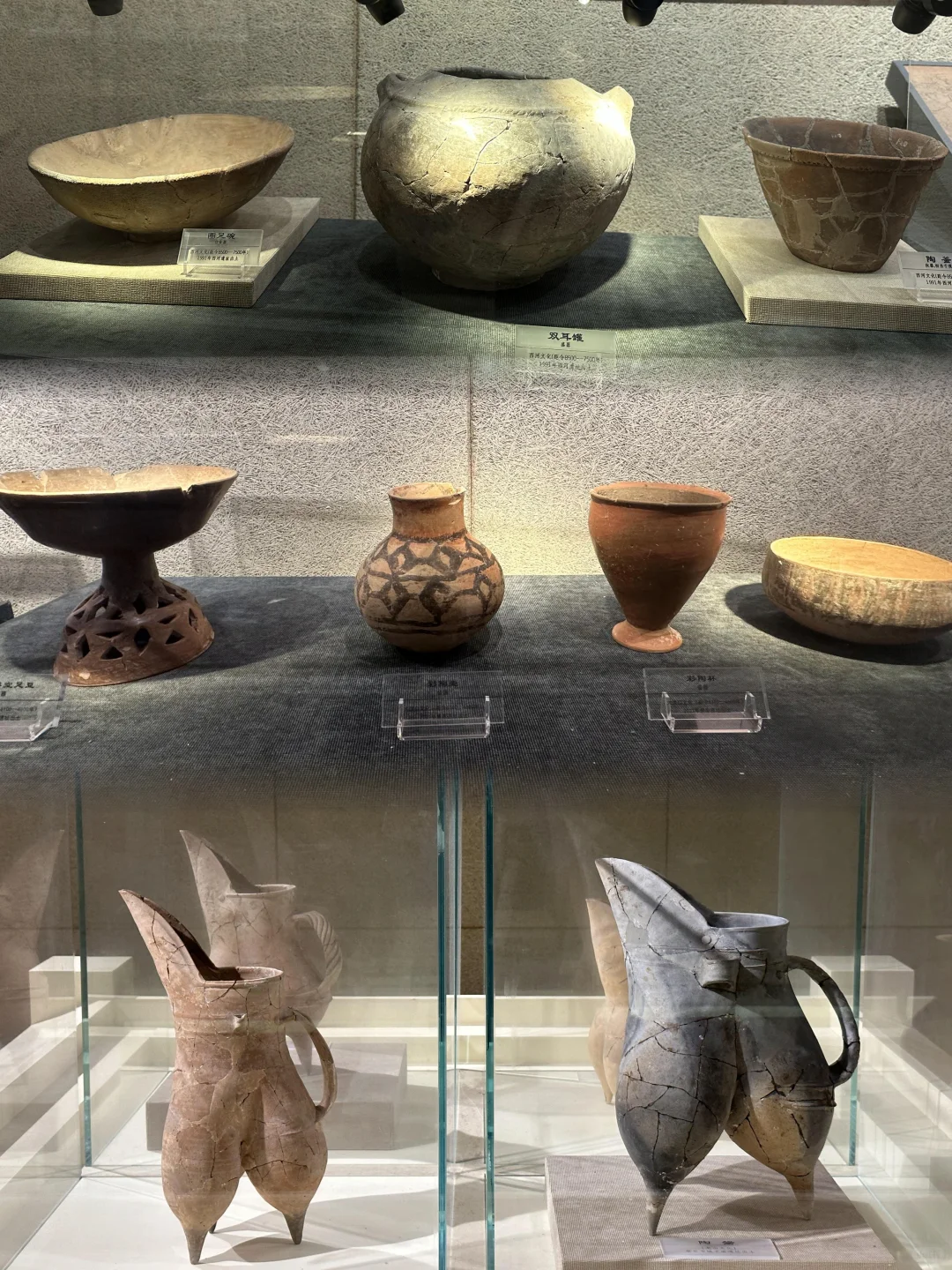 漫步城子崖遗址博物馆,展柜内陈列的红陶鬶,伸着长长的鸟喙状流口,三个袋足稳稳撑起器身;黑陶高柄杯静静立着,通体乌黑,亮如镜面;白陶壶上印着信仰的符号。