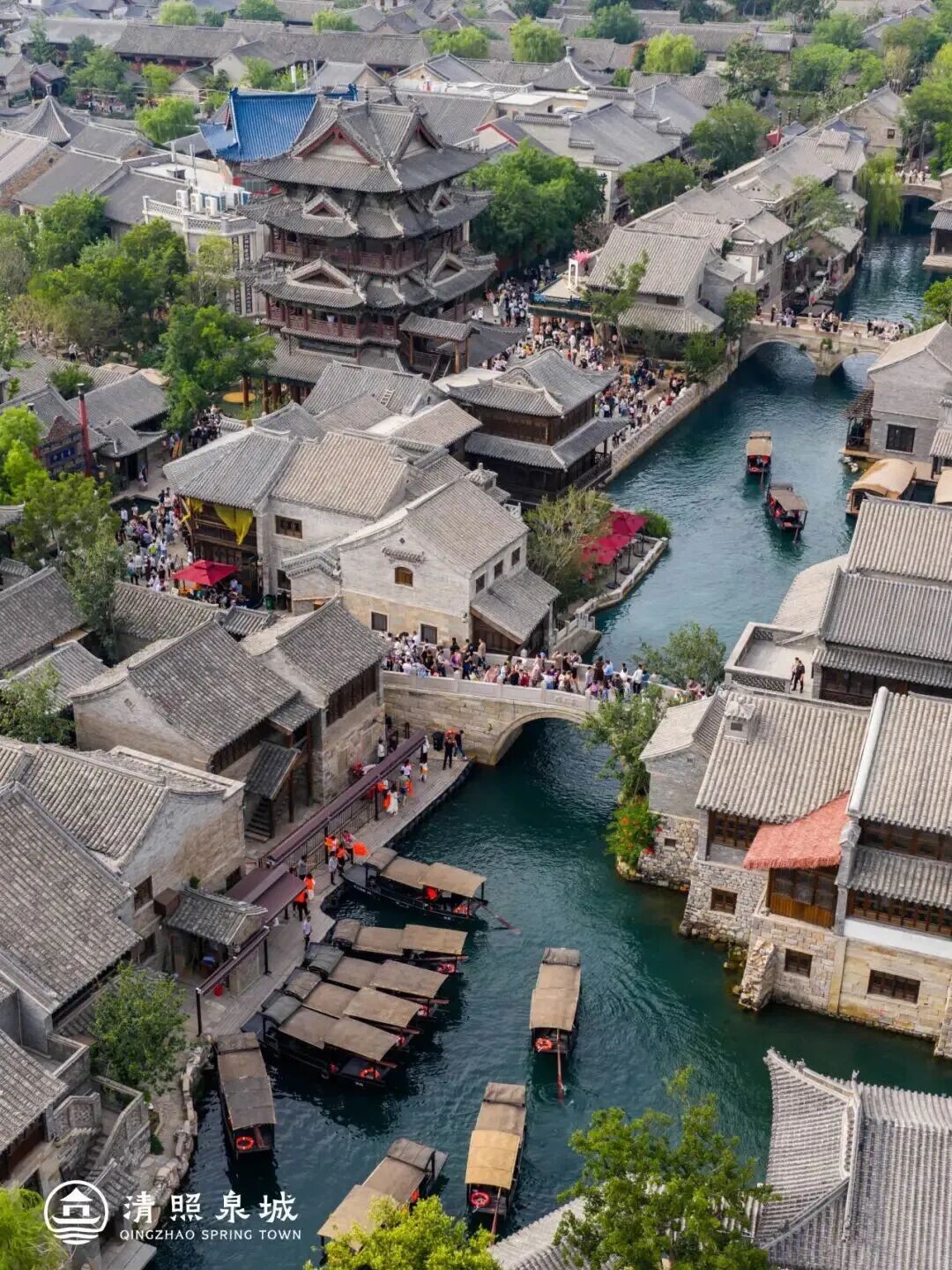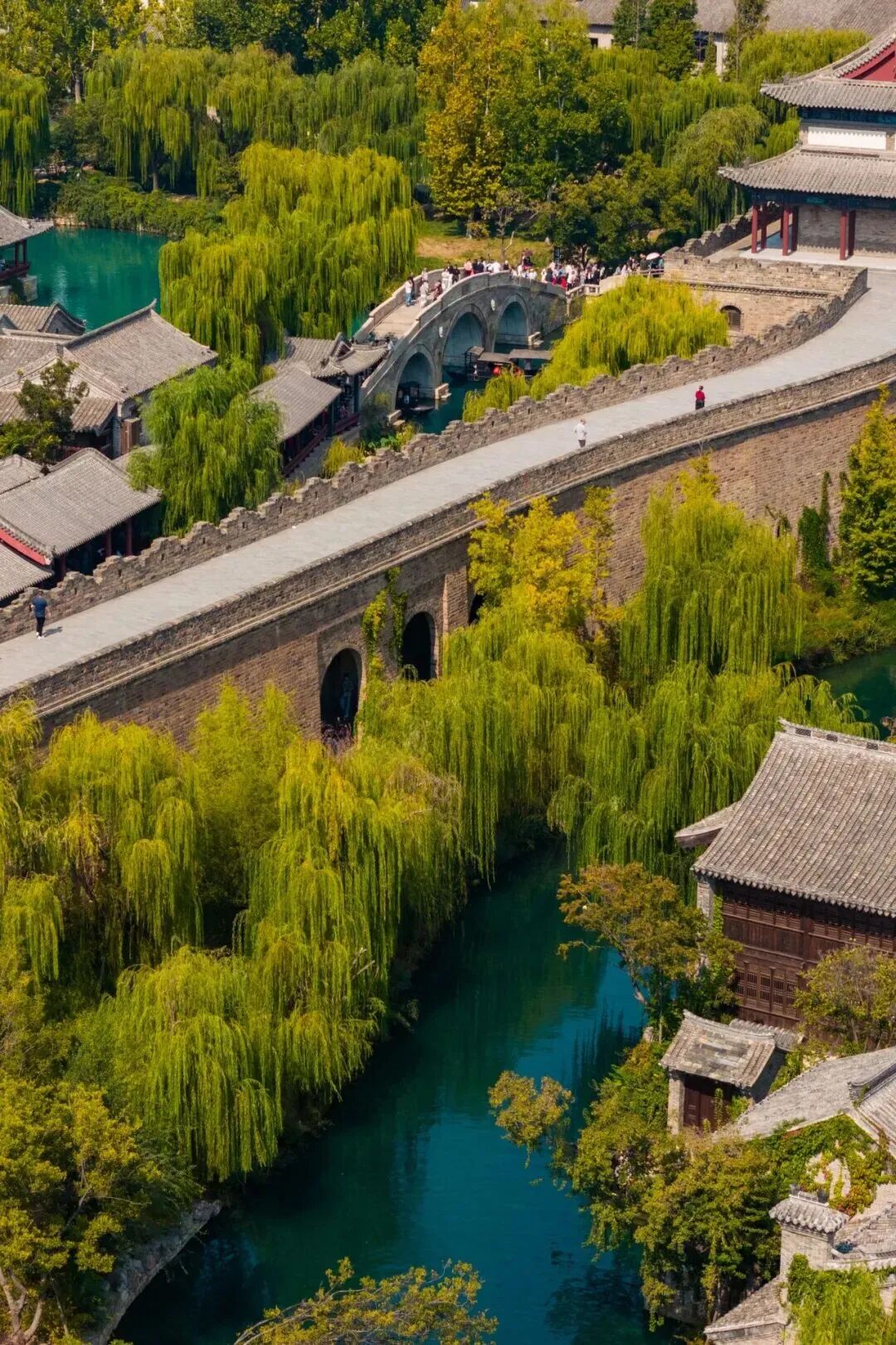 这是一座以泉水为主题的特色古城,建筑以明清时期的风格为蓝本,处处是小桥流水、白墙黛瓦,温婉得让人恍惚置身江南。