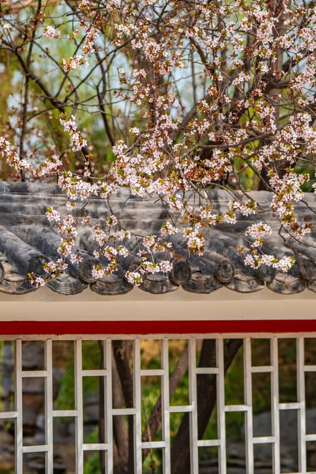 阳春三月,风光和煦,万千花朵含苞待放,将古色古香的建筑点缀得更加缤纷。