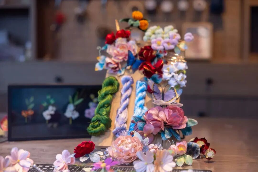 如果逛累了,不妨走进荣华阁,坐下来体验绒花或缠花,做一朵永不凋零的春日之花,感受非遗技艺的匠心独运 。