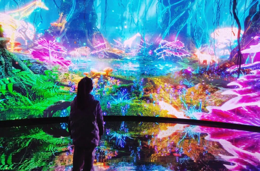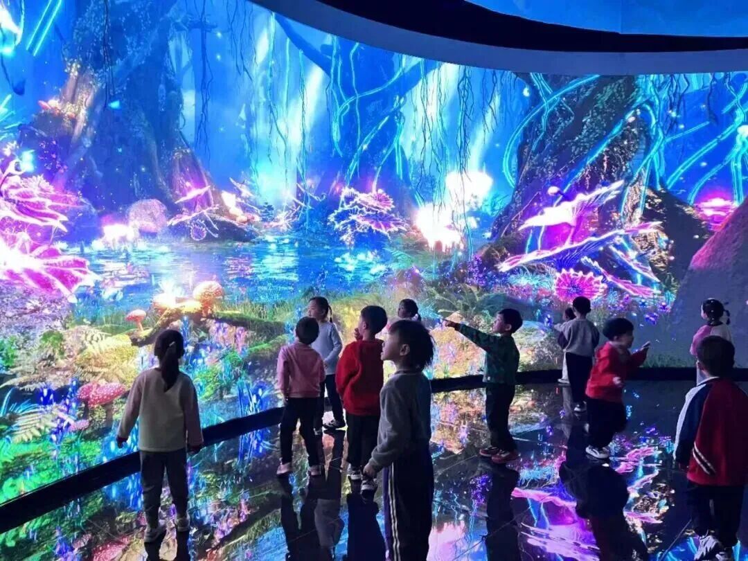 环形展厅采用室内全彩弧形LED柔性屏技术,构建170度环形科普影院,让你身临其境地感受植物世界的神奇魅力。
