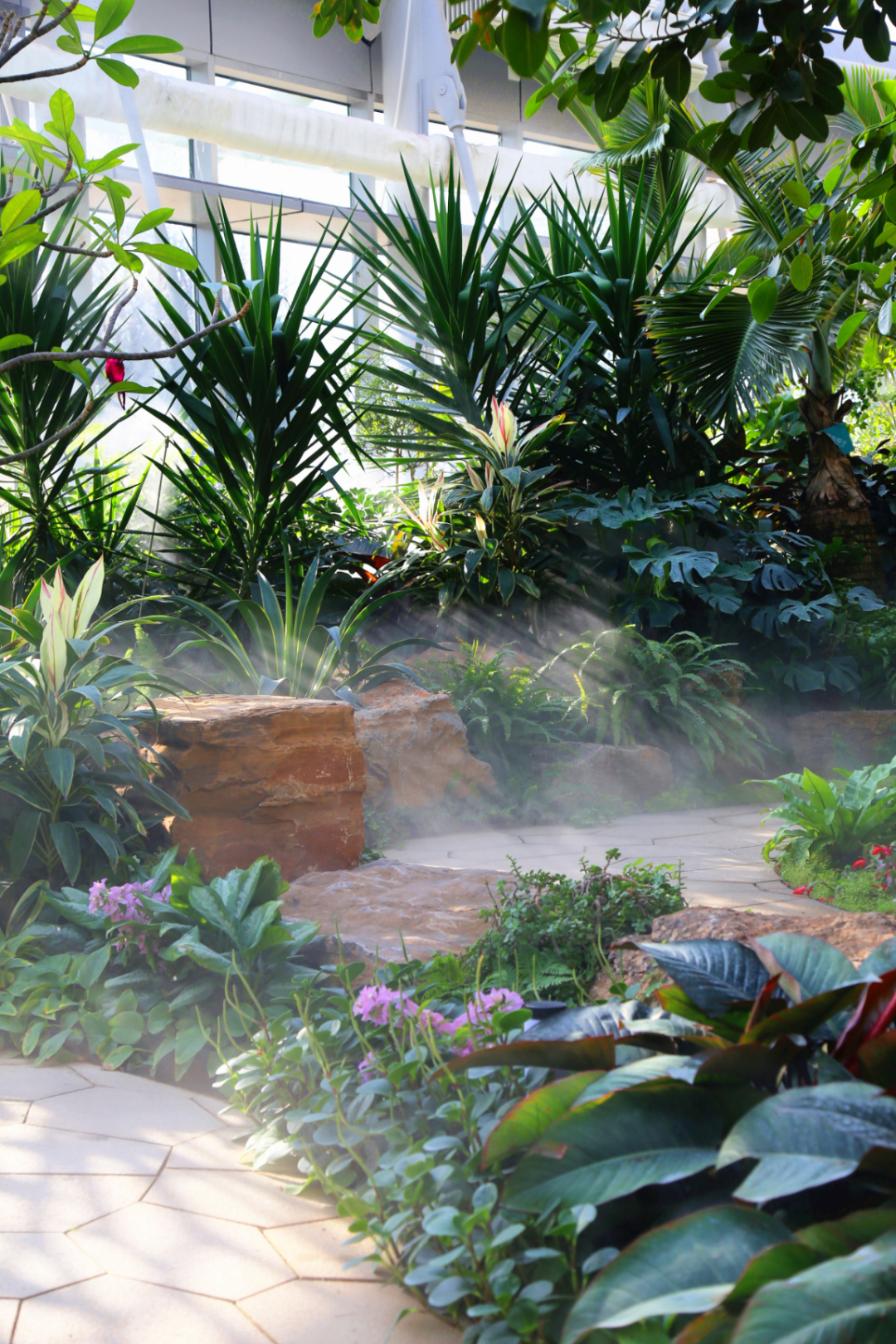温室部分汇集了600余种热带、亚热带植物,藤蔓缠绕、雾气氤氲,仿佛闯入一片雨林秘境。