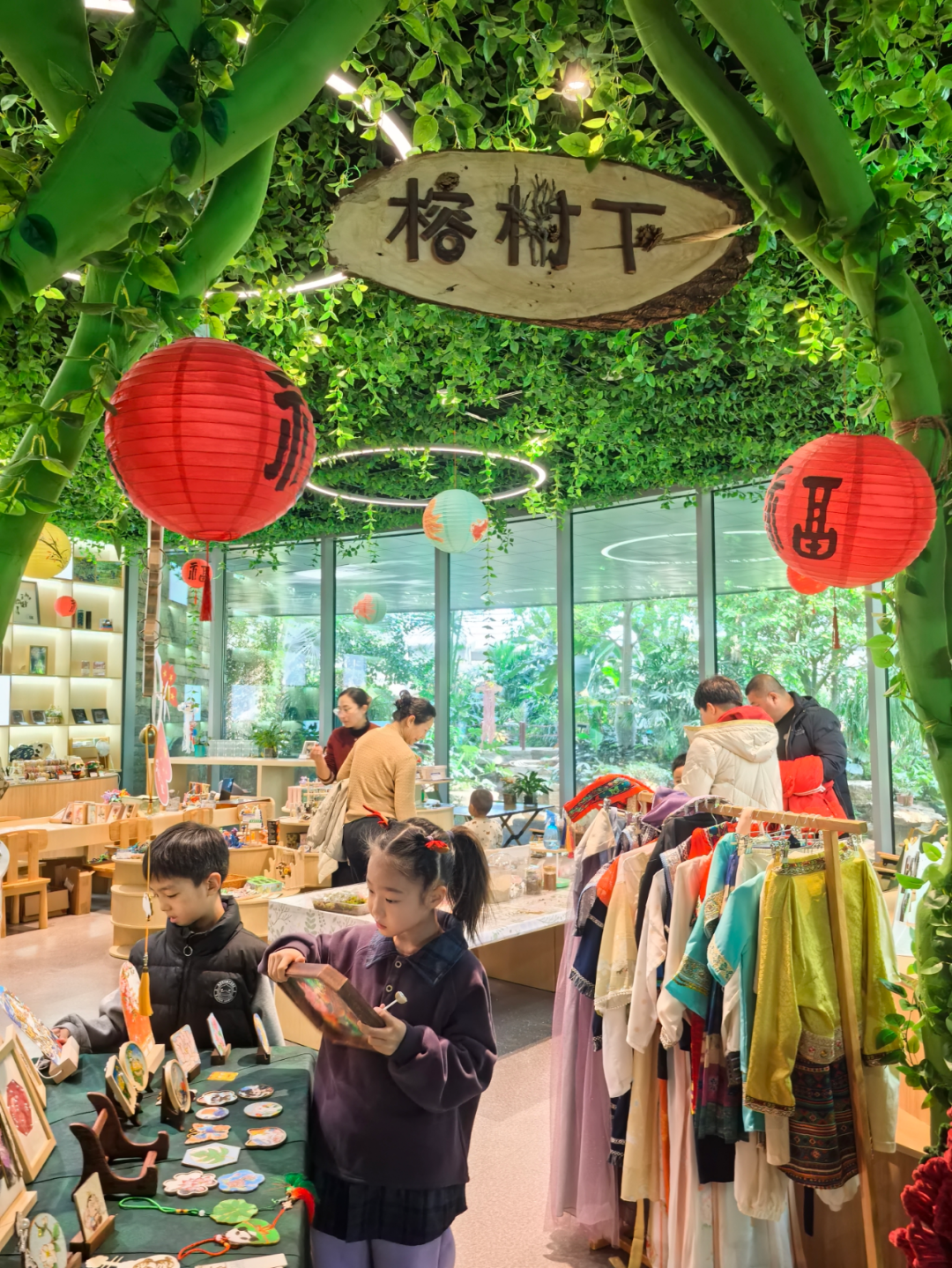 累了就去“榕树下”休闲驿站,品一杯咖啡,驿站内设有手工体验区,大人孩子可以一同动手,制作心仪的小摆件、绿植盆栽。