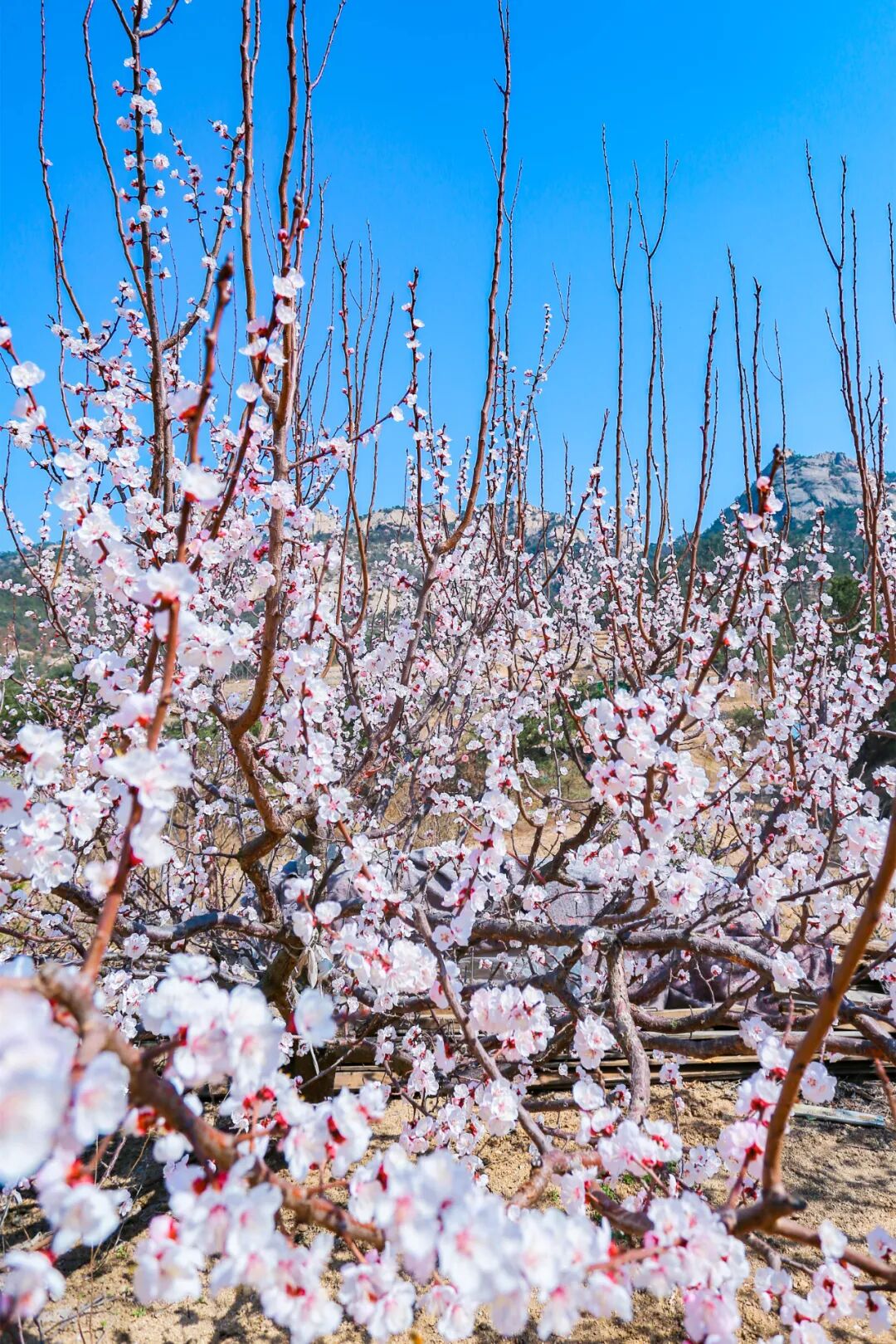 五莲县松柏镇驼石沟的杏花已有多年历史,每年春天,驼石沟都会举办赏花季主题活动,漫山杏花绽放,点缀着山野村舍,不疏不密,恰到好处,一幅最美乡村画卷跃然眼前。