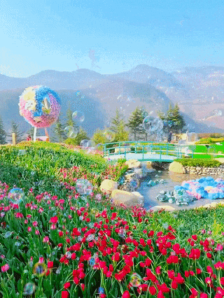 百万株郁金香在8000㎡的云崖之上渐次盛放