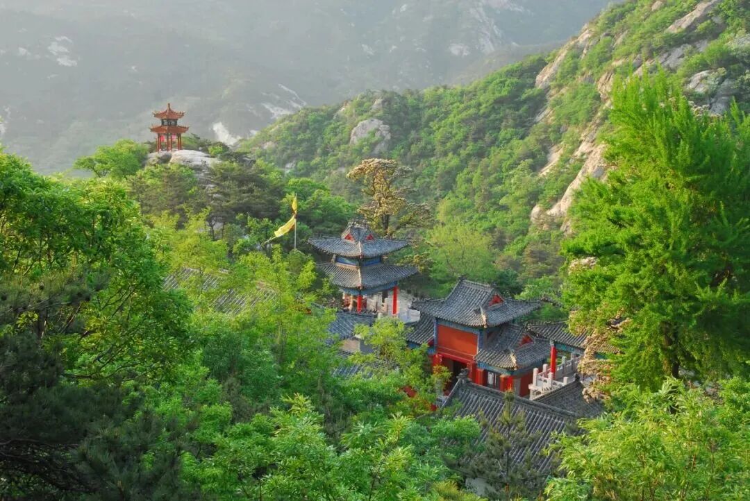 四周群峰环绕,山势平缓,林木茂密,古建筑错落掩映在绿意之间,整体氛围安静、古朴、治愈,没有喧嚣,没有嘈杂,非常适合喜欢慢游、偏爱安静的游客。