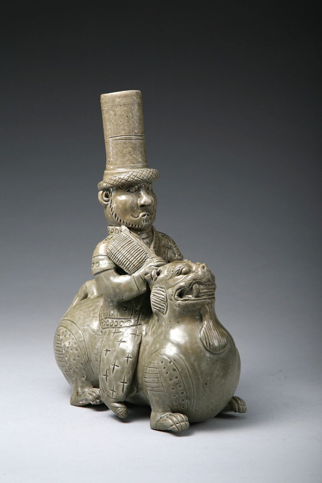 西晋·青瓷胡人骑狮器
