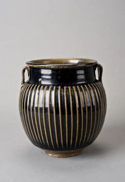 金·鹤壁窑黑釉双系凸线纹瓷罐