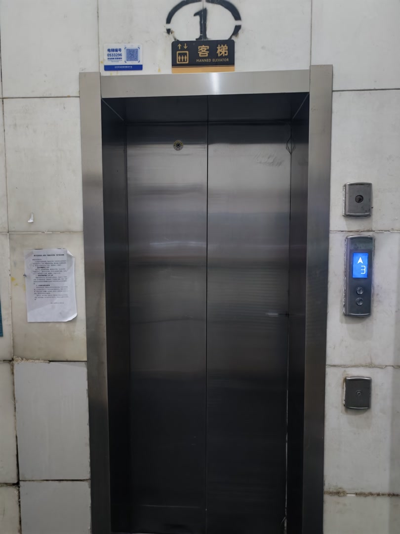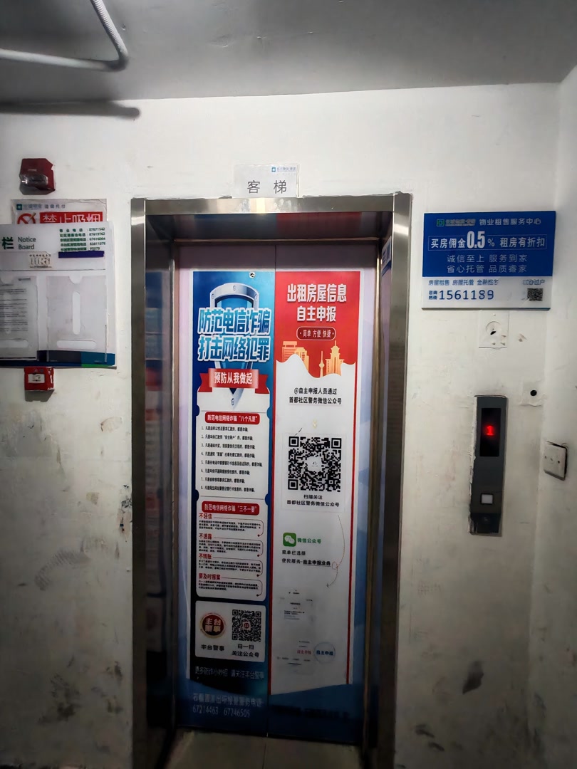 北京像素小区,电梯二维码贴在大厅电梯顶部