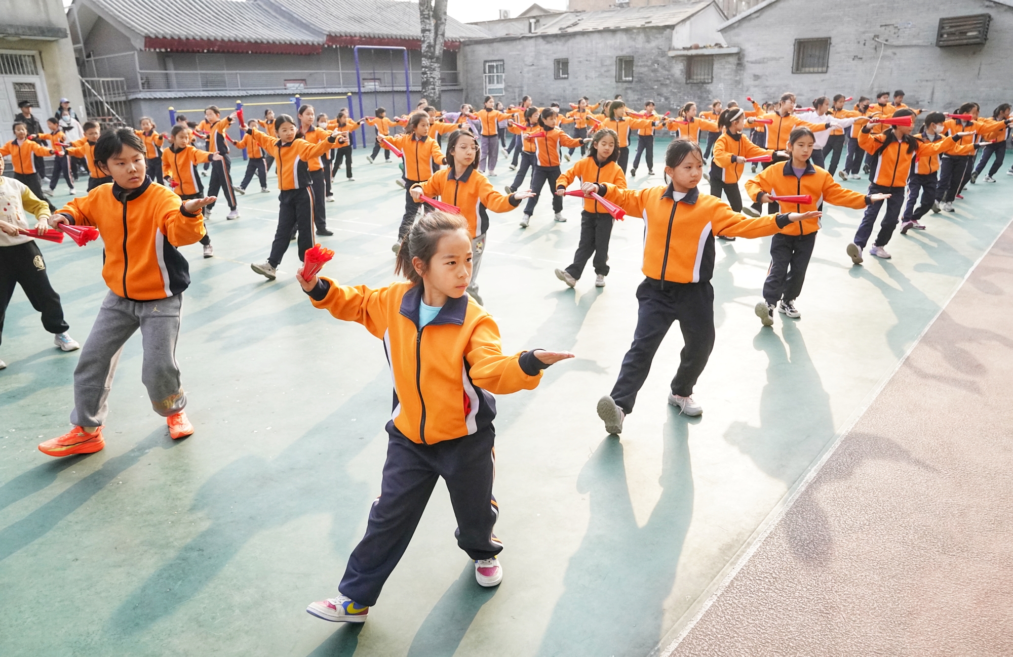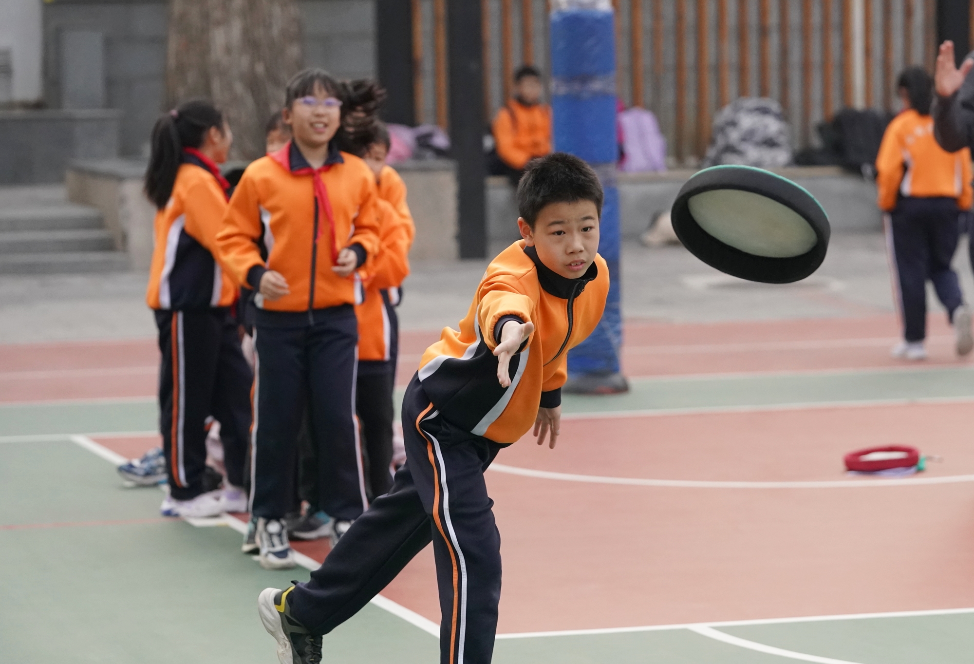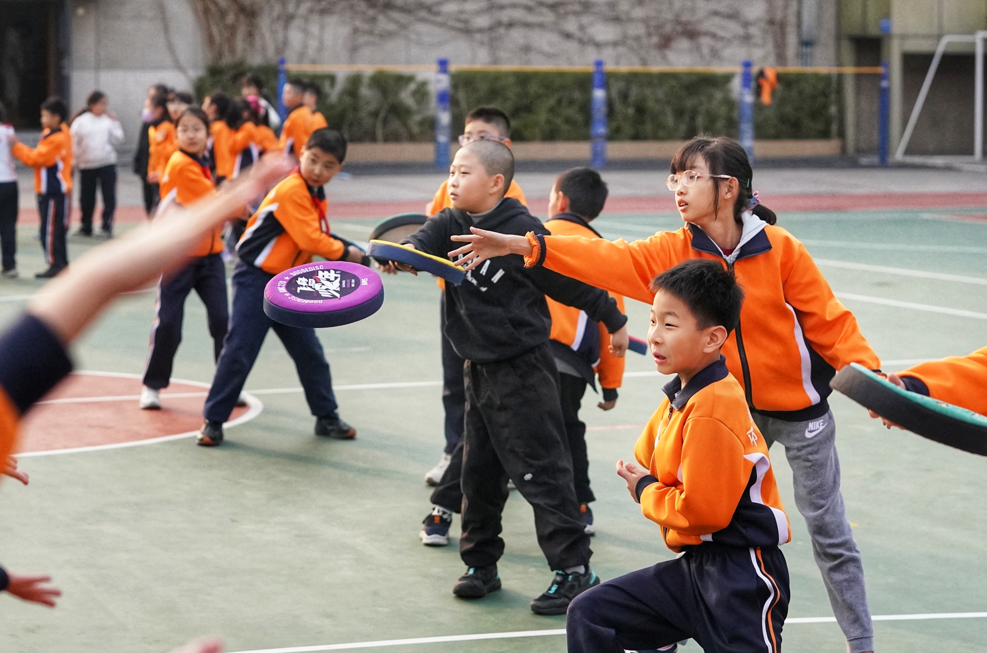 3月23日,东城区分司厅小学课后服务时段,飞盘课堂活力满满,学生在奔跑传接中乐享运动。作为北京市首所开设飞盘课的小学,该校已将飞盘运动深耕六年,成为四年级课后服务热门项目。