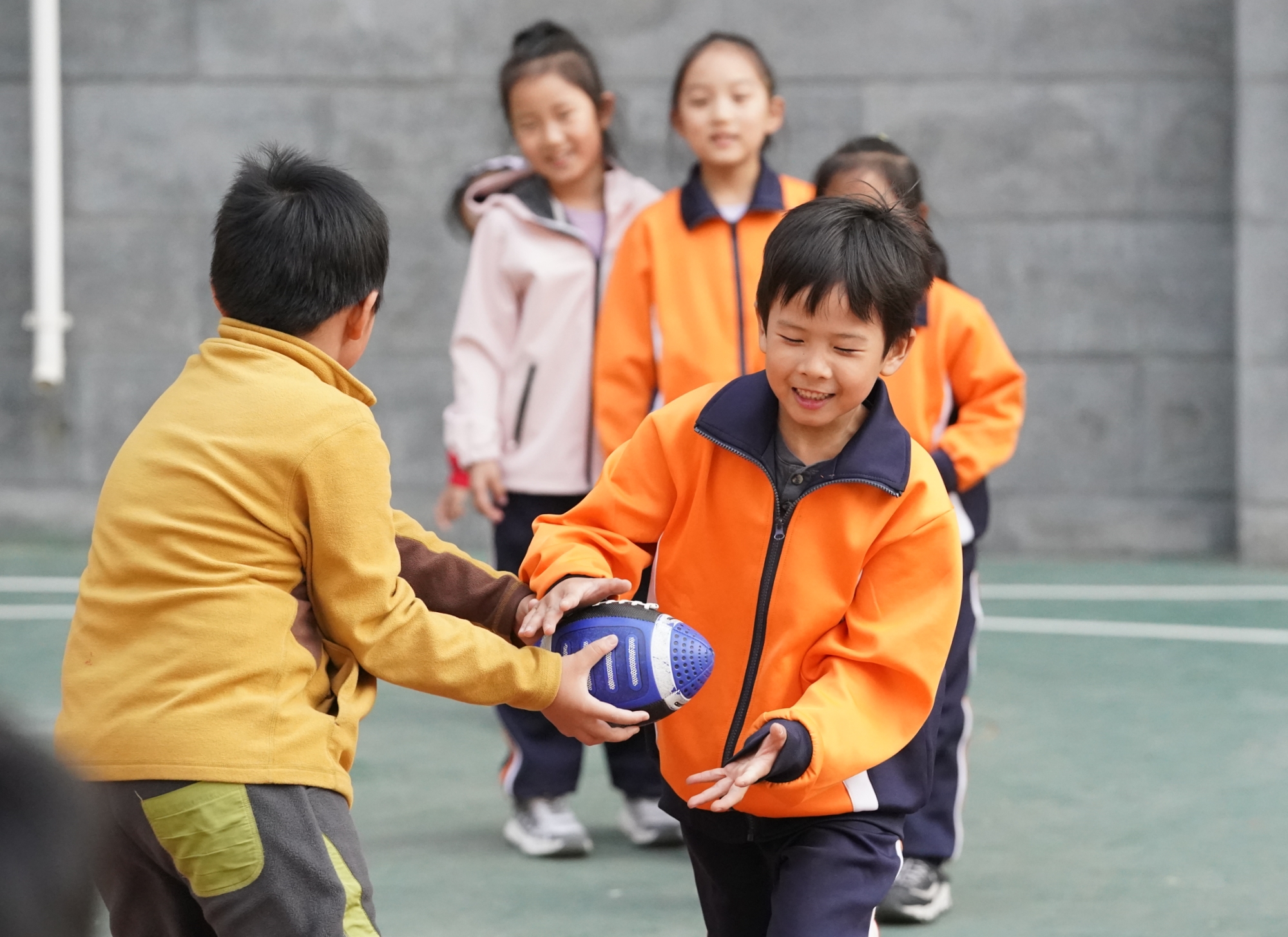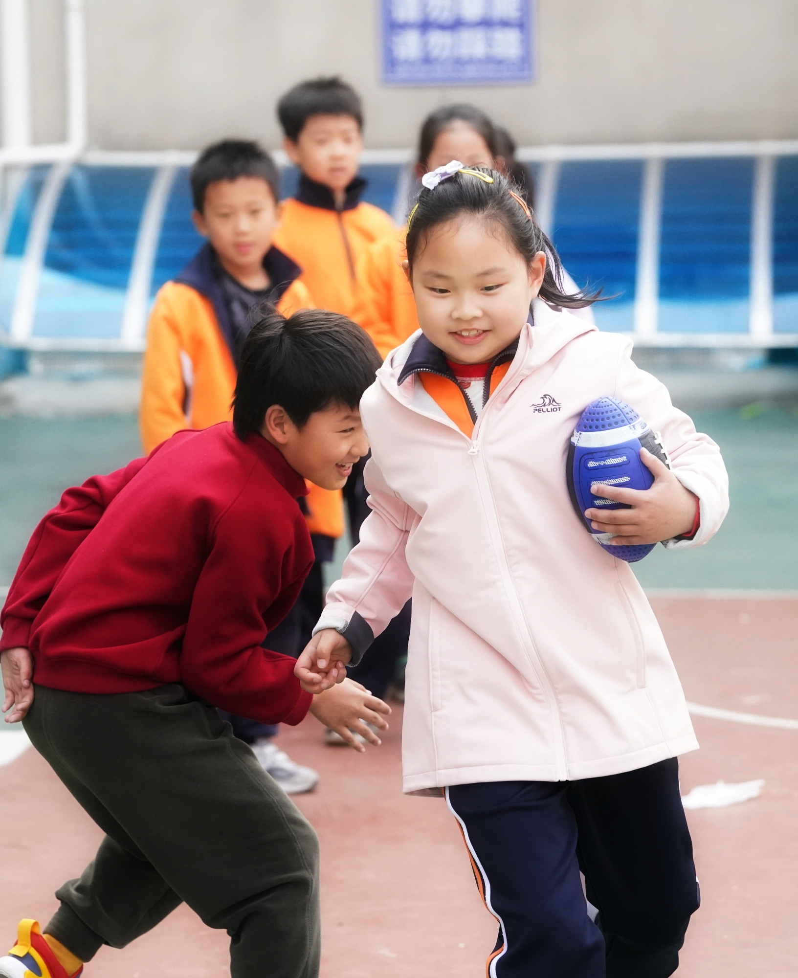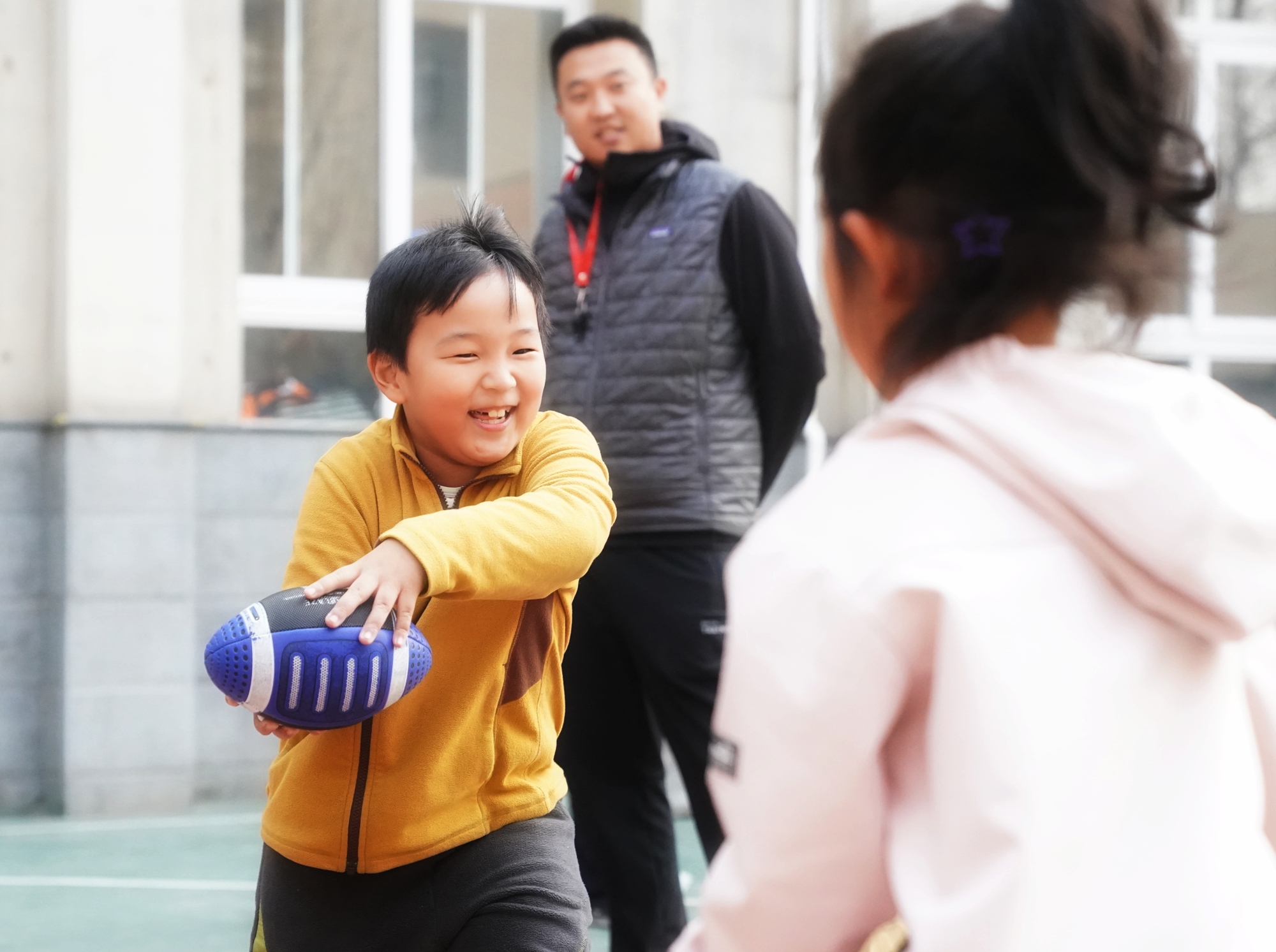 学校以“健康第一”为理念,打造“飞盘+体能”教学模式,将耐力、跳跃、投掷等训练融入趣味课程,提升学生参与度与身体素质。校长张峻楠介绍,依托专业师资与校外教练,学校构建“基础课程全覆盖、特色课程有亮点、社团活动强技能、校园赛事促提升”四位一体体育体系,开设足球、篮球、武术、橄榄球等多项特色课程,保障学生每日校内2小时户外体育活动,助力每位学生掌握至少两项体育技能。