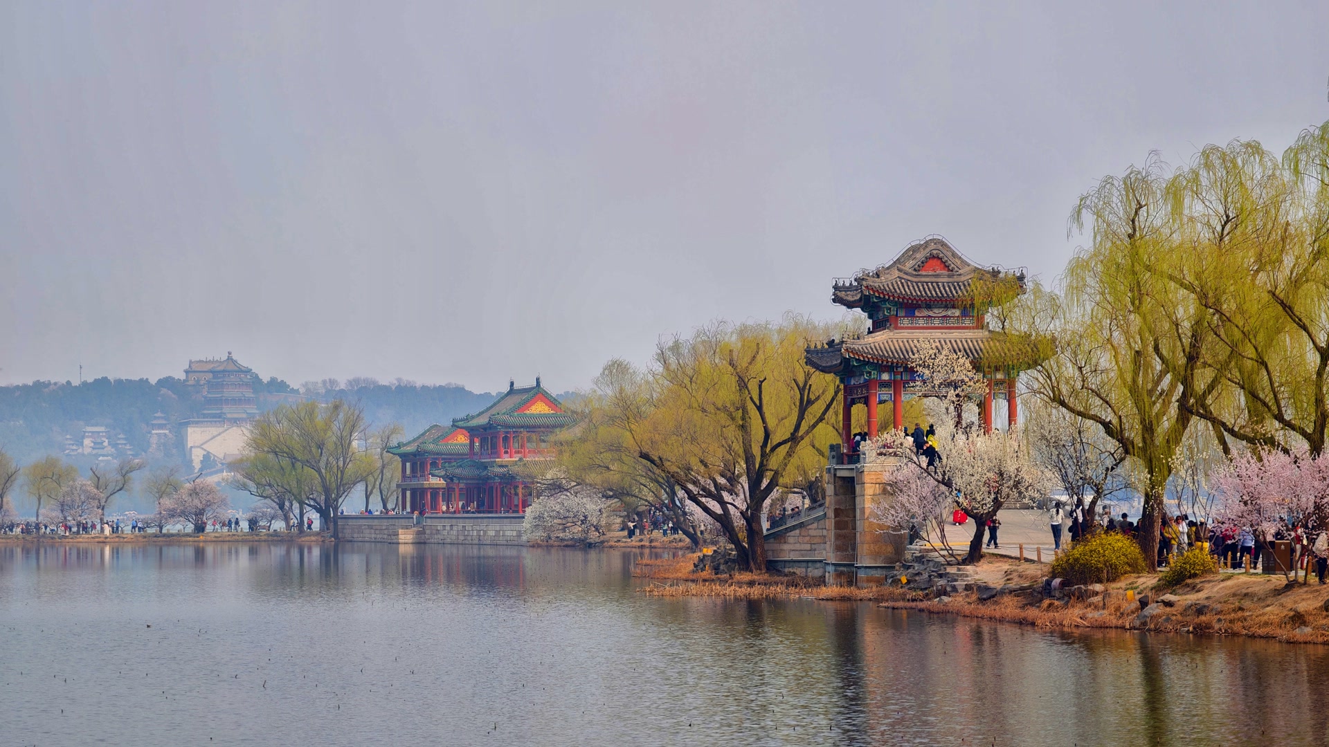 颐和园西堤:春和景明,花开满堤