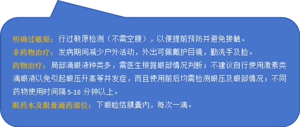 3. 特殊情况:症状严重者,医生会在确保安全的情况下短期、小剂量使用激素类眼药水,或联合口服抗过敏药,不建议自行购买使用。