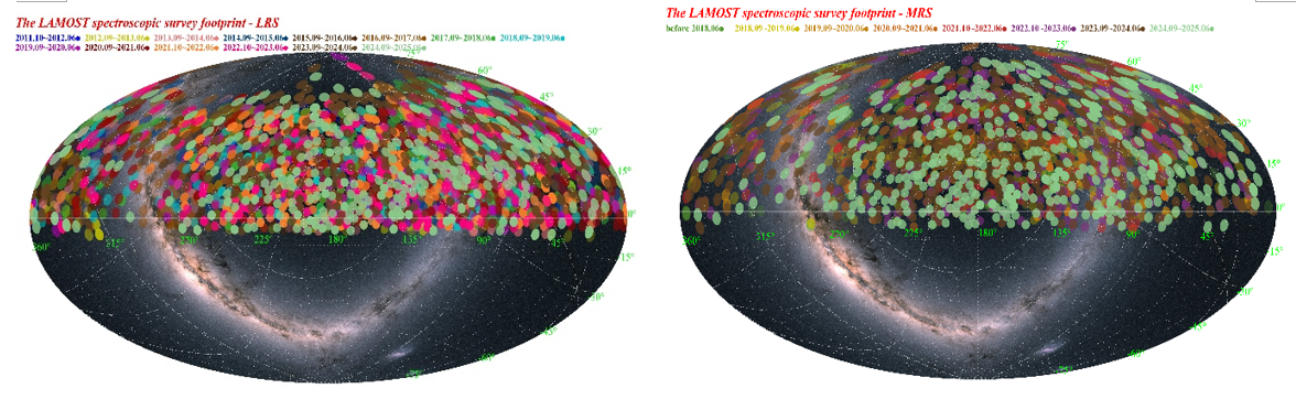 DR13数据集的观测周期为2011年10月至2025年6月,覆盖6961个低分辨率观测天区、3404个中分辨率观测天区。此次发布的3082万条光谱,包括约1347万条低分辨率光谱、1735万条中分辨率光谱。此外,DR13发布数据中还包括一个约1294万组的恒星光谱参数星表。