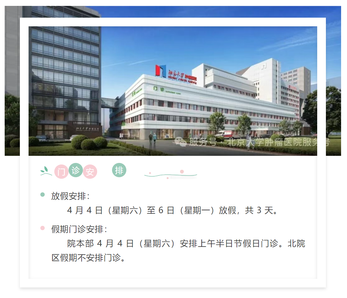 北京大学肿瘤医院2026年清明节假期门诊安排公布