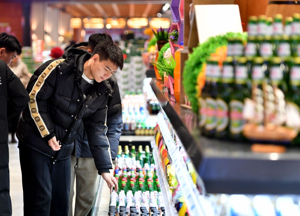 2024年1月17日,顾客在雄安新区一家超市内挑选商品。