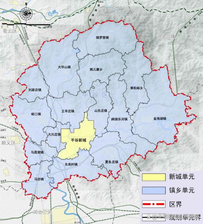 平谷新城范围包括滨河街道、平谷镇、兴谷街道的全域范围以及王辛庄镇、大兴庄镇、山东庄镇的部分区域,总用地面积约44.18平方公里,共划分为9个街区,是承载平谷区产业升级和城市综合服务提质的重要承载区。
