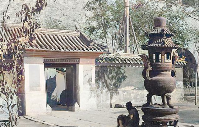 正阳门,即前门,为北京内城九门之首,其月城内,靠城楼券门两侧分别建有关帝庙与观音庙各一座。其中关帝庙位于西侧,为一层歇山顶殿宇,曾是京城关帝庙中香火最旺盛的一座,自明代起便被载入皇家祭祀活动史册,故而被誉为“天下第一关帝庙”。庙中有三件“灵宝”:三柄大刀,最长的一柄达两丈;一幅关帝画像,相传为唐代吴道子所绘;一尊明代汉白玉石马。因这尊石马立于庙前,雕刻工艺精美,被称作“正阳石马”,这座关帝庙也因此被人们俗称为“立马关帝庙”。