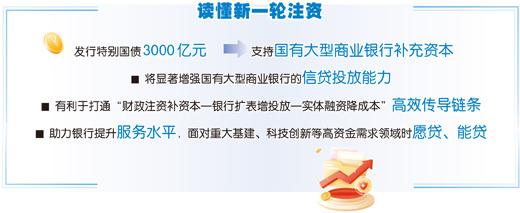 银行服务实体经济的能力,与自身资本金实力密切相关。在多位业内人士看来,今年发行特别国债3000亿元,支持国有大型商业银行补充资本,有利于更好发挥资金的“撬动”作用,为实体经济增添源头活水。
