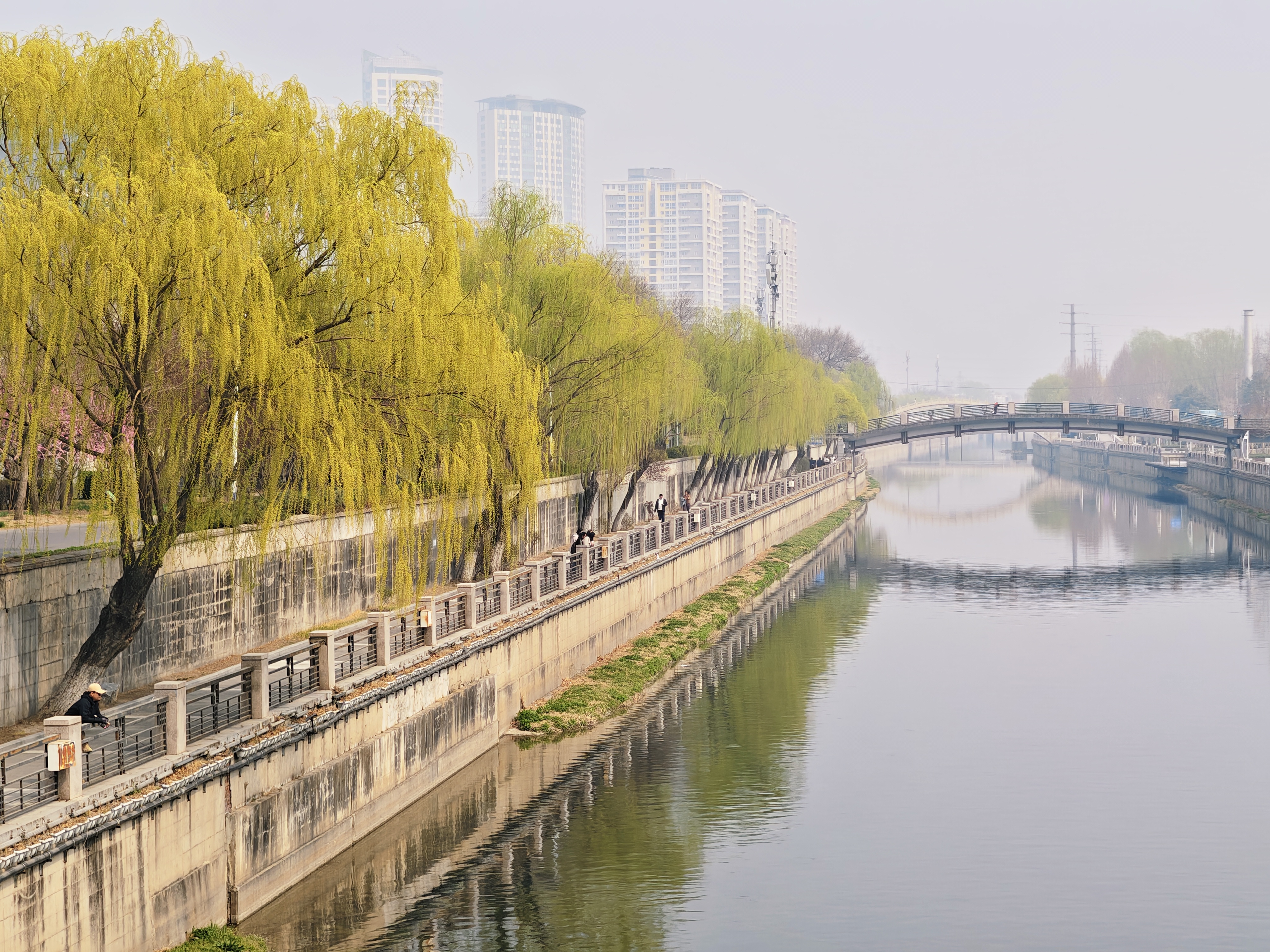 通惠河畔春意浓,柳丝吐绿,桃花灼灼,玉兰凝香,纸鸢飞舞,碧水悠悠映天光。一派生机盎然,尽是春日好风光。