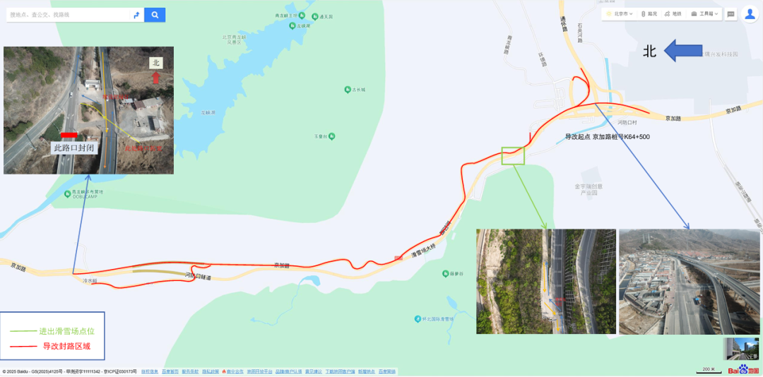 2.导行实施(2026年4月10日至2027年3月19日):出京方向通怀路互通立交出入口至冷水峪村路口道路全封闭施工。出京方向车辆导行至现况进京方向的外侧机动车道行驶,进京方向道路改为双向行驶。