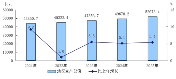 图1 2021—2025年地区生产总值及增长速度