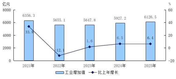 图3 2021—2025年工业增加值及增长速度