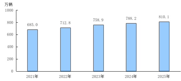图4 2021—2025年末机动车保有量