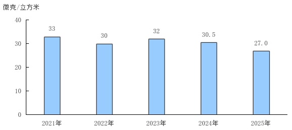 图9 2021—2025年细颗粒物(PM2.5)年均浓度