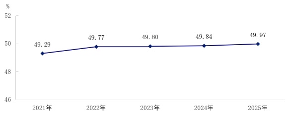 图10 2021—2025年城市绿化覆盖率