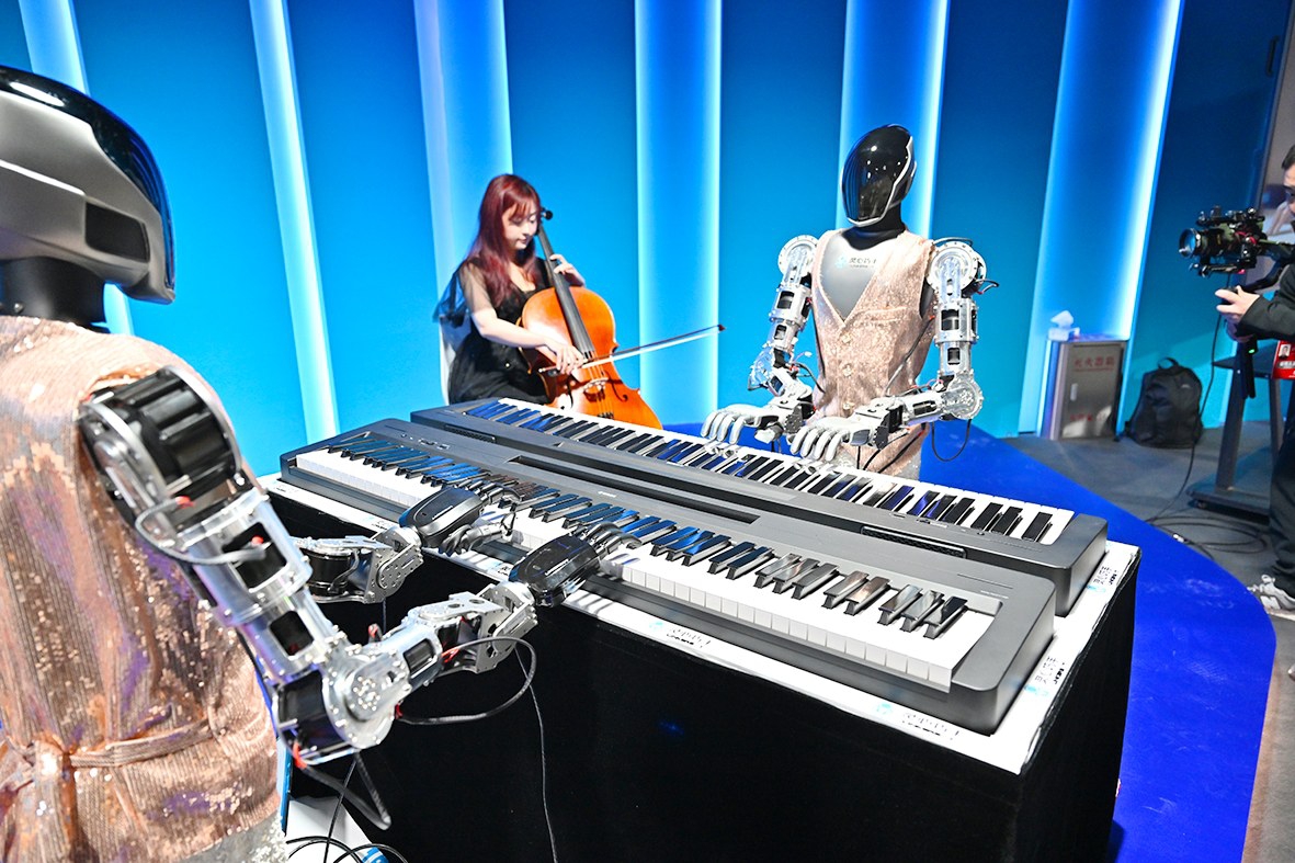 机器人献上精彩弹奏表演,为现场带来极具互动性的科技体验。记者 常鸣/摄