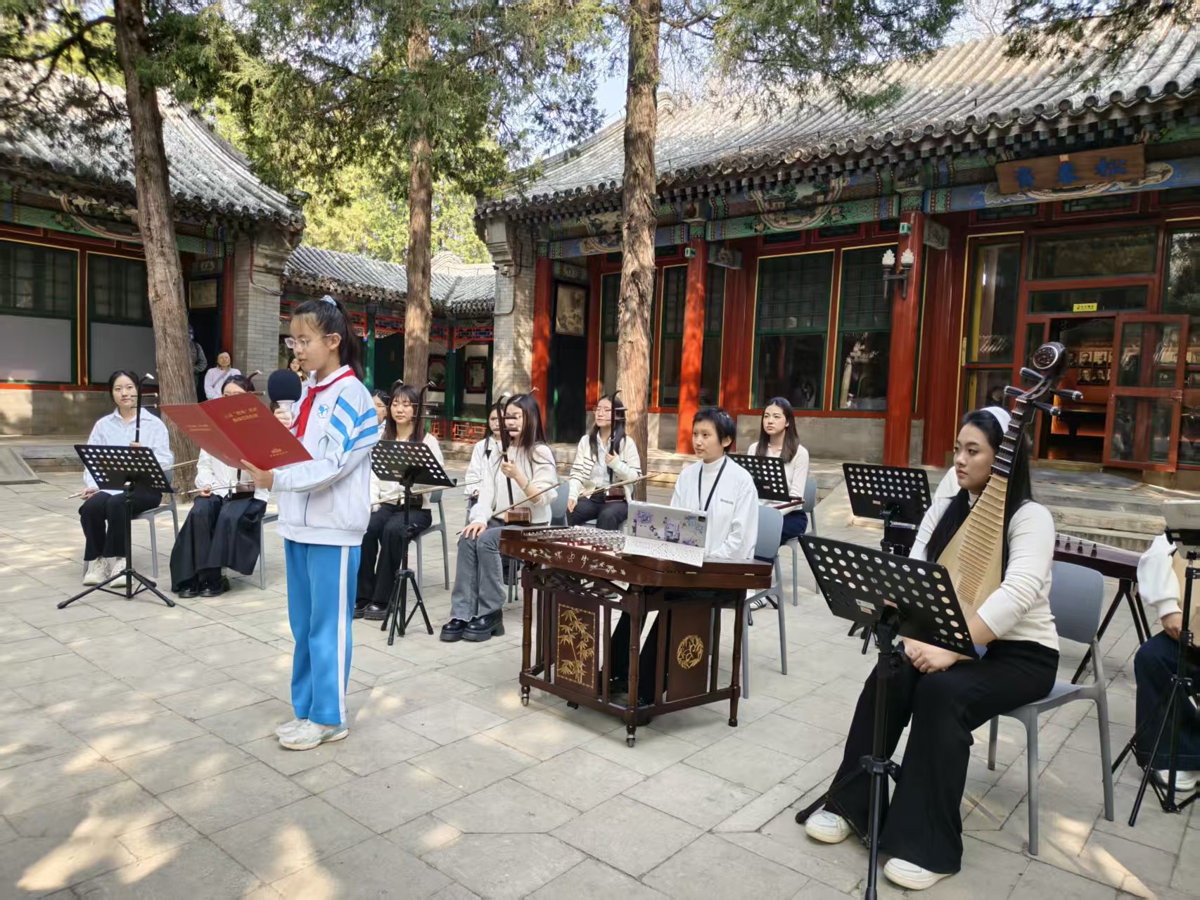 上午9时30分,活动在益寿堂院内正式拉开帷幕。中国音乐学院师生带来的红色国乐奏唱快闪率先点燃现场气氛,《光明行》《赛马》《我和我的祖国》等经典曲目在古园中响起,引得游客纷纷驻足聆听。随后,西苑小学红领巾小讲解员代表宣读了红色传承倡议书,字字铿锵的童声传递着新时代少年传承红色基因的决心。