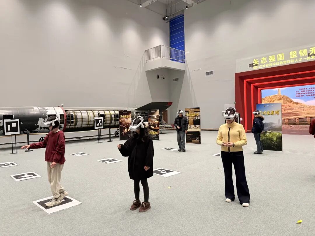 展厅内还设有全国高校首个原创红色校史VR大空间项目“梦回杜甫川”。北理工师生发挥自身学科技术优势,通过高精度建模,在虚拟世界里,重现了延安时期自然科学院的办学场景,观众戴上VR设备,便可步入虚拟的延安时期校园、窑洞教室与实验室,在沉浸式体验中感悟“红色基因”的深刻内涵。
