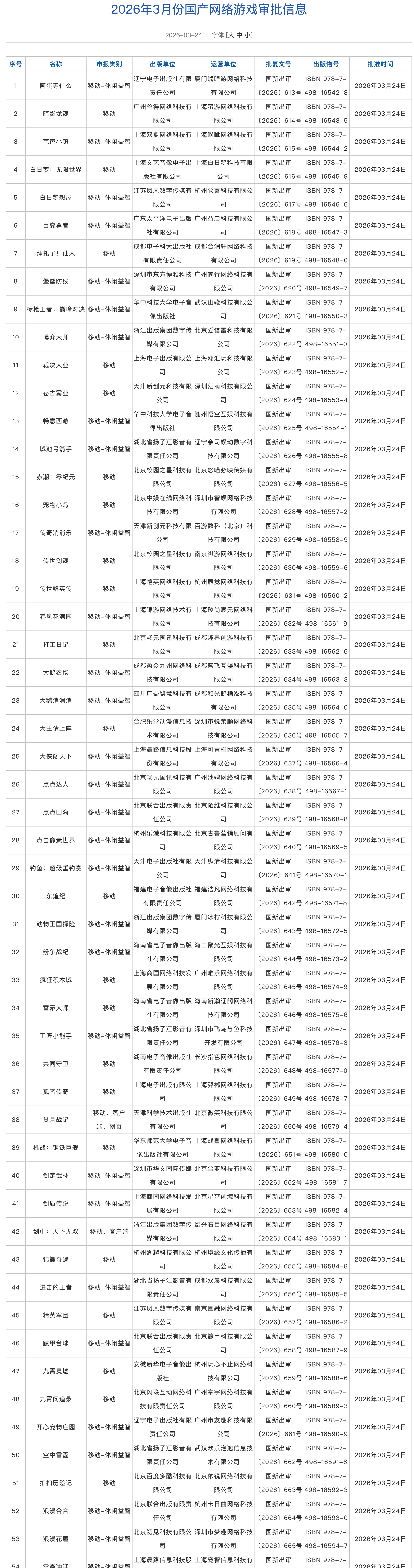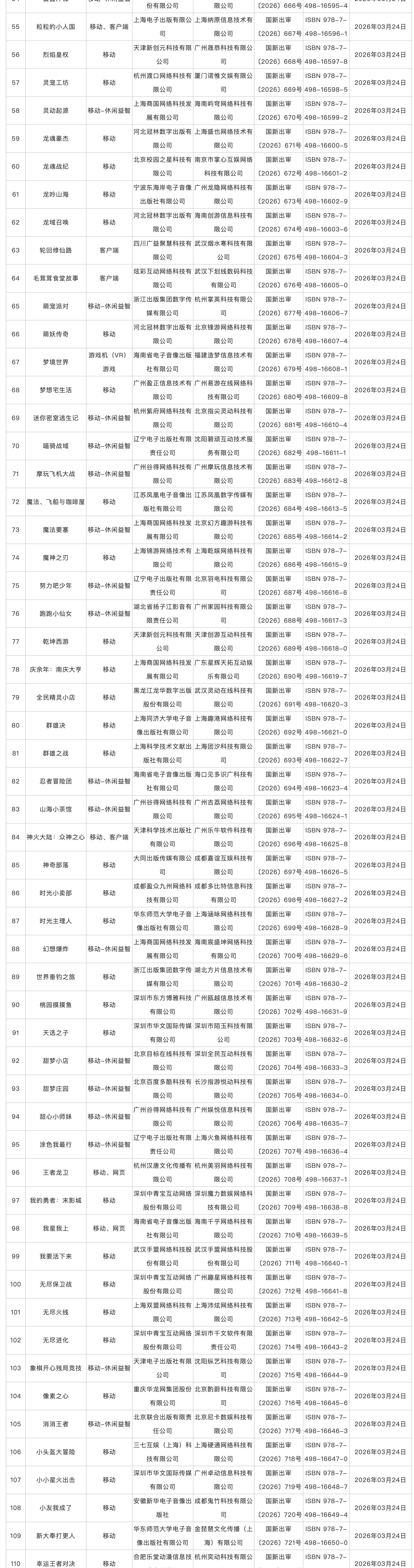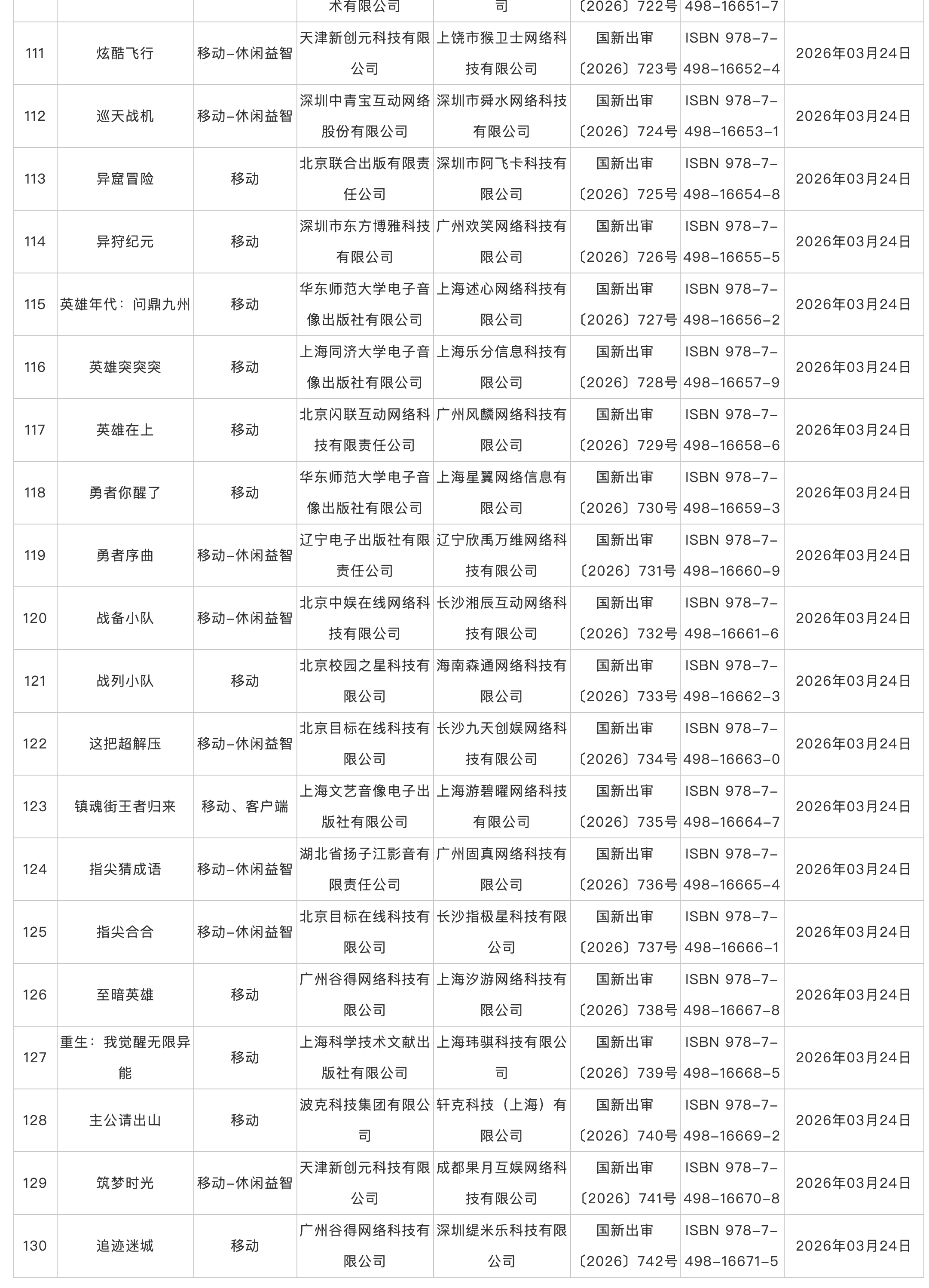 国家新闻出版署公布2026年3月份国产网络游戏审批信息,共130款游戏获批。