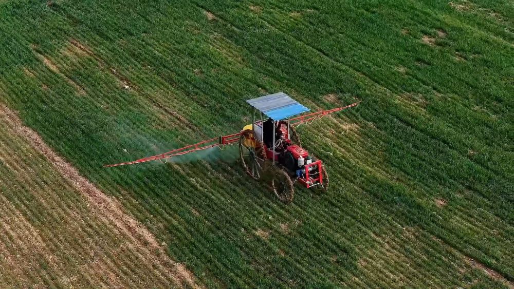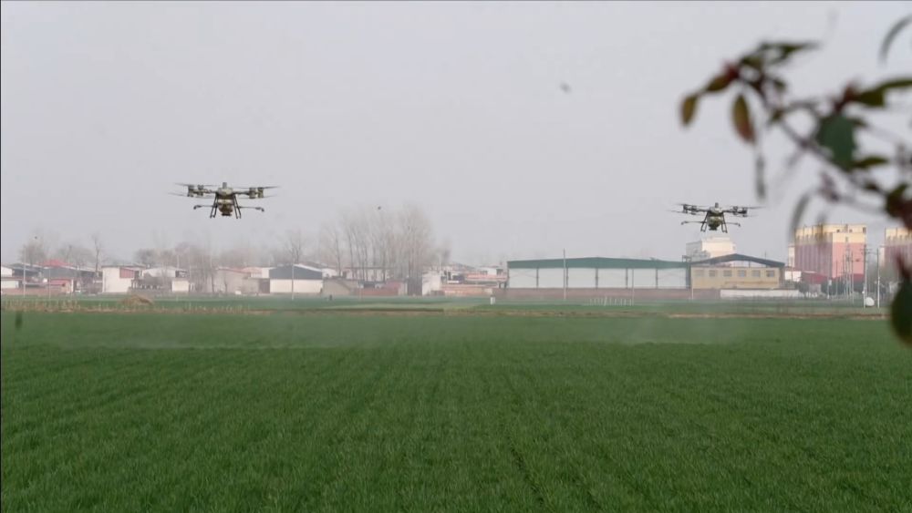 河北省沧州市孟村回族自治县的麦田里一片忙碌,大学毕业后返乡创业的“95后”新农人耿立宫,正带领着他的团队忙着追肥飞防作业。