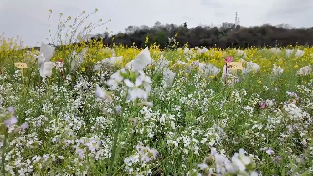 在四川省农业科学院现代农业科技创新示范园内,四万余种油菜资源迎来盛花期,这片田地被切割成一个个规整的几平方米小方格,每一块方格都种植着不同油菜品种。