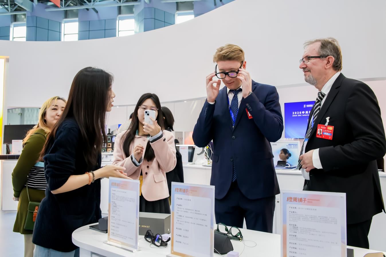让智慧落地,让技术生金,更多潜在的合作交易在现场酝酿。交易区里,寓意“成果商店”的“橙果铺子”人气最旺——在这片科技新品首发特色空间里,30余件硬核新品扎堆首秀。裸眼3D显示器,卷轴屏,AI眼镜,五指抓握力达330N、闭合仅需0.2秒的仿生拉压体灵巧手应手Y-Hand M2,面向大模型训练与推理场景、性能卓越的昆仑芯P800 OAM模组……“橙果铺子”聚焦人工智能、智能硬件、智慧医疗、新材料等领域,展现高校院所的原型概念样机、行业龙头企业的创新成果,打造集科技新品发布、体验、交流于一体的窗口,让创新成果加速走进市场。