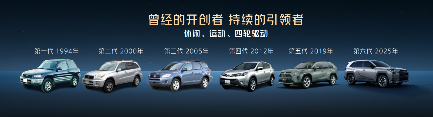 更值得一提的是,在整整6代车型的发展历史上,RAV4荣放从来都不是一个因循守旧的保守派,而是常怀一颗“进取之心”。2025年11月,一汽丰田重磅发布全面进化的IT'S TiME 3.0技术品牌,涵盖智能、动力、软硬件科技的全面进阶。作为城市SUV的传奇车型,全新荣放借此次技术升级全面焕新,凭借更多高价值的产品卖点,进一步巩固了“合资新力量”下全场景SUV的市场地位。