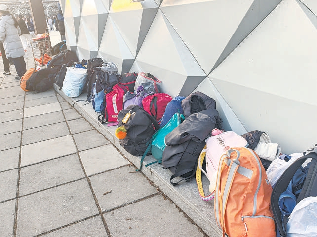 上午7时许,南门特步跑步俱乐部门口,不少跑者正在做跑前热身,地上堆放着百余个背包,一层摞着一层。“风一刮,包上落的全是灰土、树叶,下雨下雪也会把包弄脏,关键是包放得太多太乱,也不好找。”一位跑者无奈地说。