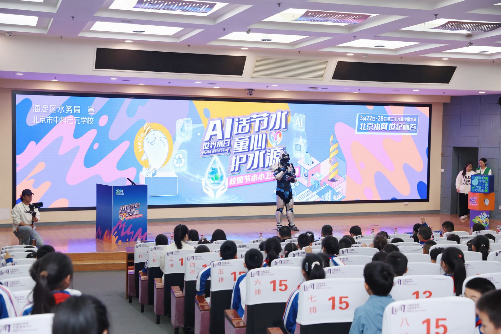 为深入贯彻节水护水理念,引导青少年树立节水意识、掌握节水技能,推动节水行动融入校园日常,在2026年“世界水日”“中国水周”期间,海淀区水务局联合北京市中科启元学校,于3月24日在该校阶梯教室开展“AI话节水 童心护水源——校园节水小卫士在行动”主题活动,为二年级约230名学生带来了一场趣味十足、干货满满的节水科普盛宴。海淀区水务局工作人员、学校师生等共同参与本次活动。