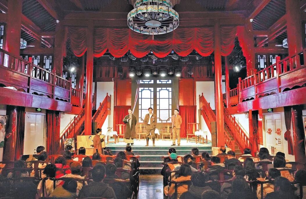 这正是新空间运营者和文艺工作者们共同思考的课题。颜料会馆相关负责人介绍,引入沉浸式剧目,正是希望实现“一戏一空间、一步一剧情”的构想,让文物建筑变为文化消费新场景。随着一部部剧目上演,前门东区的会馆群落被深度激活。观众在看戏前后,可以信步走进周边的新京菜餐厅品尝美食和下午茶,在书店品读文史,或是在汉服非遗馆体验传统技艺。一条“演艺引流、业态联动、消费闭环”的文商旅融合模式清晰可见。