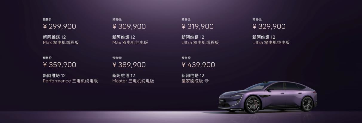 3月20日,新阿维塔12正式启动预售,新车提供纯电与增程双动力,预售29.99万元-43.99万元。作为华为乾崑与阿维塔战略合作2.0的首款车型,新阿维塔12全系标配华为乾崑896线激光雷达及太行分布式电驱;纯电车型标配98度宁德麒麟电池,增程车型标配52度骁遥增混电池。预售期间下订可享2000元意向金,抵扣5000元大定定金的活动。新阿维塔12将于4月8日正式上市。