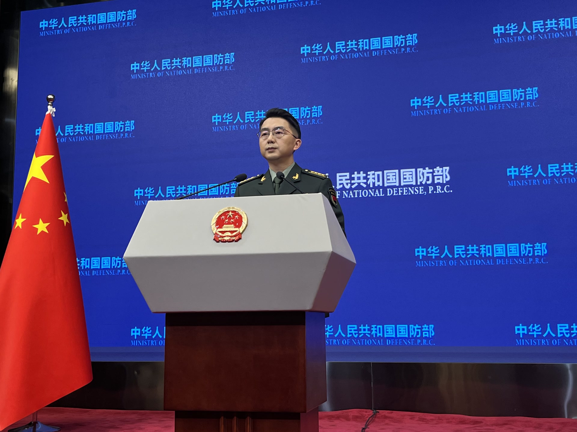 3月26日下午,国防部举行例行记者会,国防部新闻局副局长、国防部新闻发言人蒋斌大校答记者问。