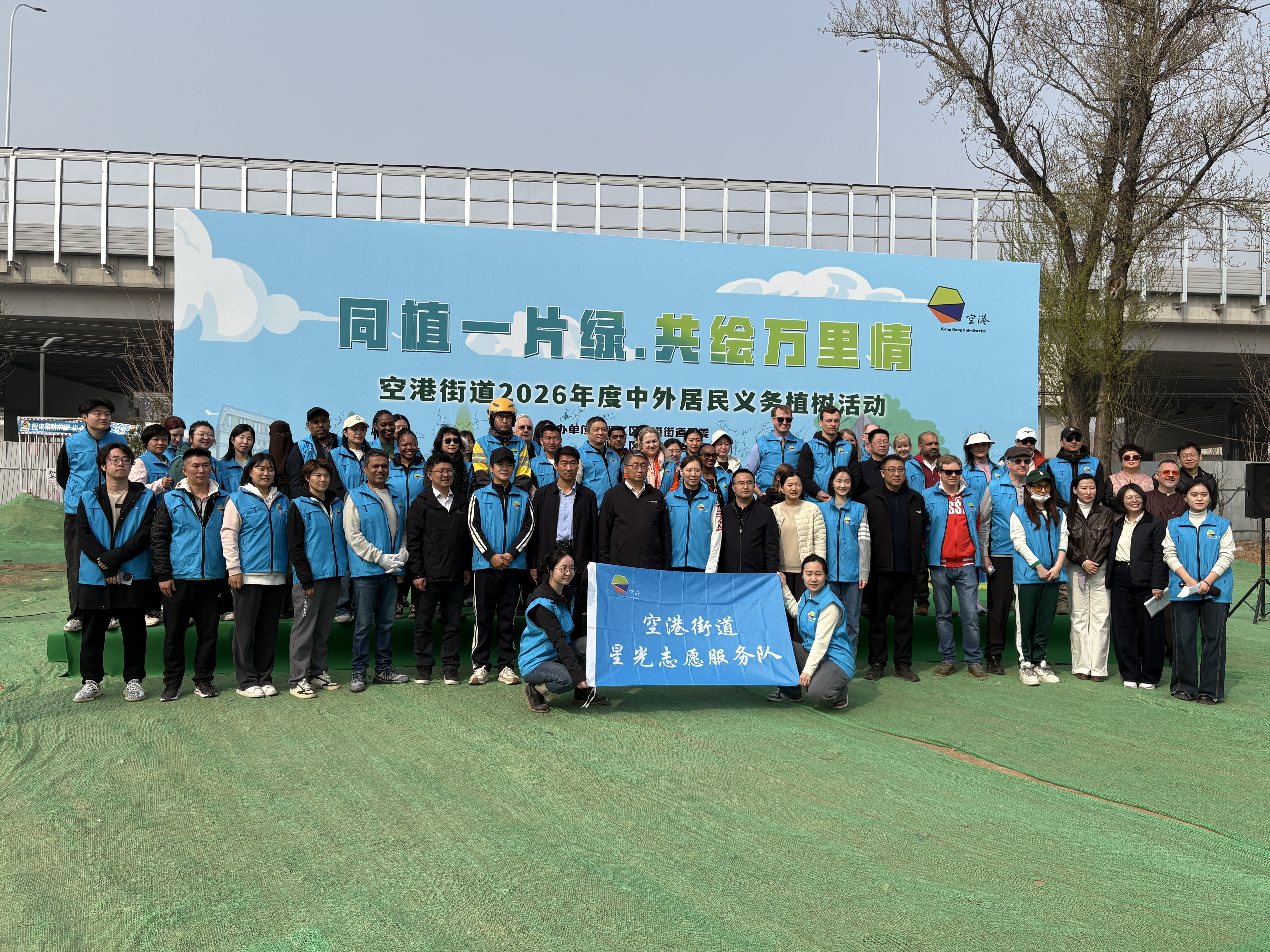 3月26日,顺义空港街道2026年度中外居民义务植树活动在国际人才社区主题公园举行。本次活动以“同植一片绿,共绘万里情”为主题,吸引约100人参与,其中包括来自英国、美国、荷兰等11个国家的志愿者。