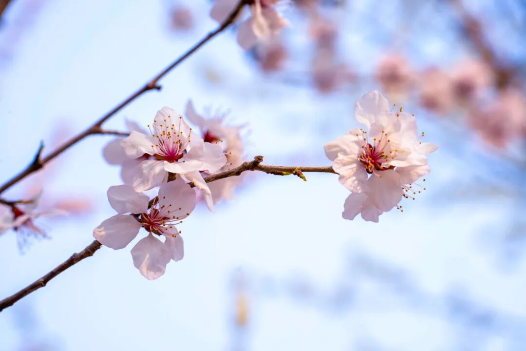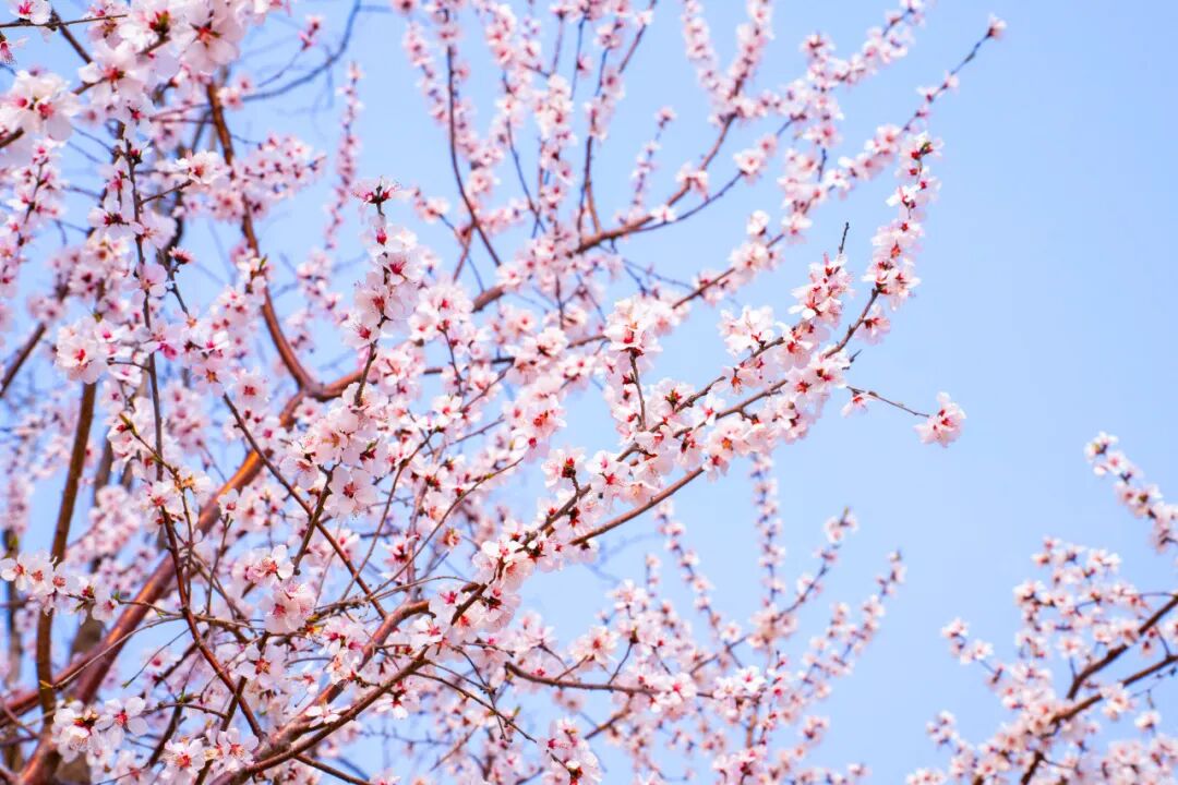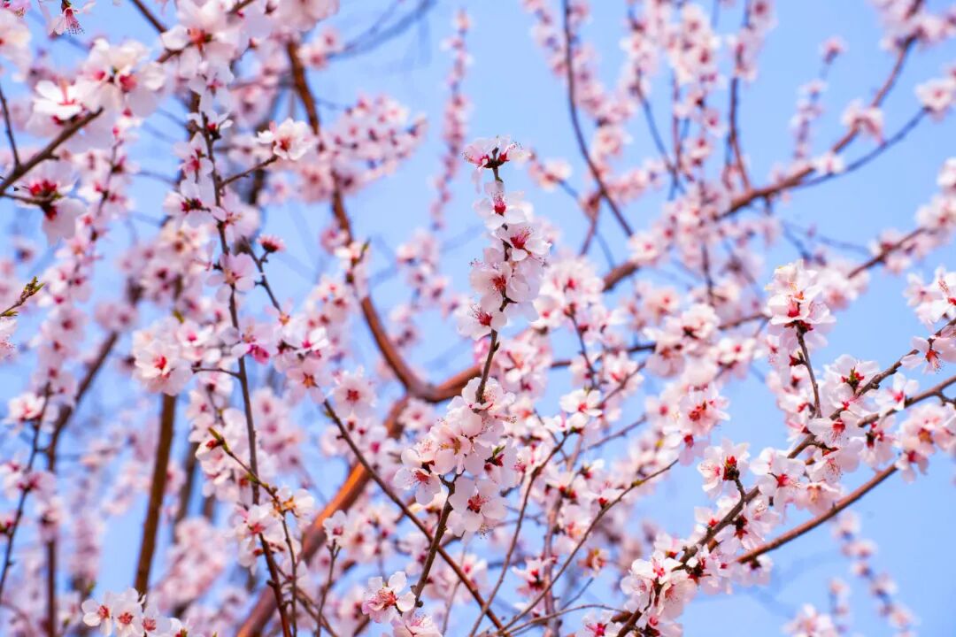 朵朵山桃簇拥,顺着枝桠漫开