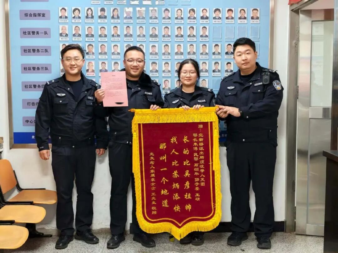 “找人比苏炳添快,那叫一个地道”。3月25日,在北京东城公安分局北新桥派出所,被居民誉为“顶流寻人天团”的几位民警看着锦旗上的金字,有些害羞地笑了起来。看似轻松的“玩笑话”,字里行间却饱含着家属对民警六个小时不辞辛苦找到走失老人的肯定与感激。