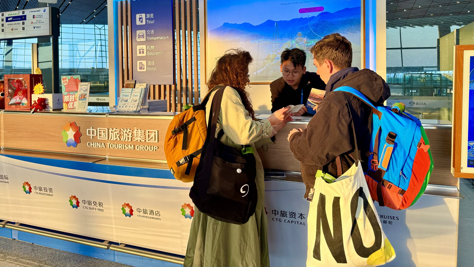 当享受240小时过境免签政策的国际中转旅客,想要探索北京的旅游,又受困于语言和交通的障碍,该如何破解?3月26日,在首都机场3号航站楼国际中转区域正式启用的“中旅旅行&首都机场文旅服务专区”,给出这一问题创新解决方案。