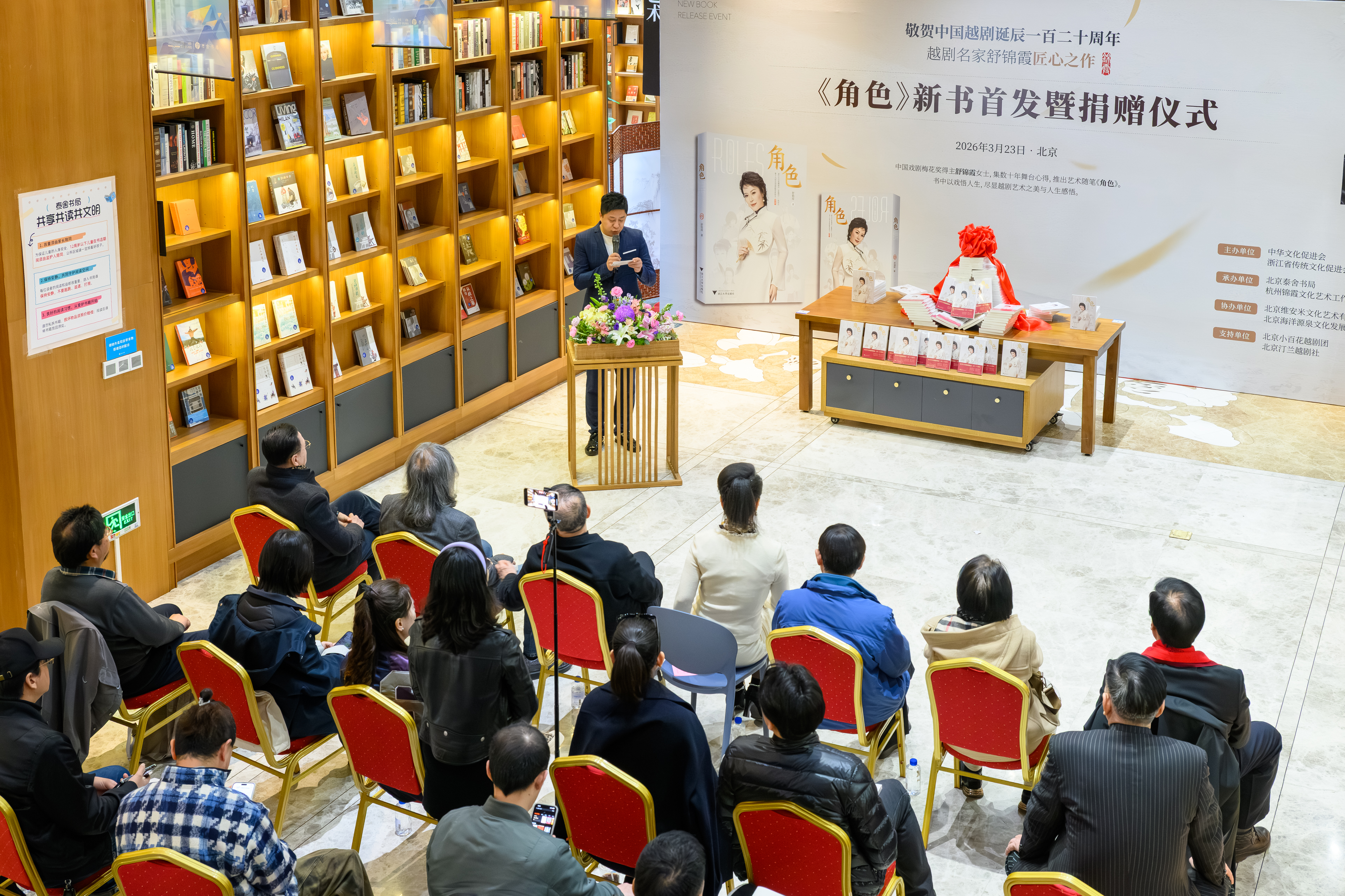 在中国越剧诞生120周年、越剧表演艺术家王文娟百年华诞之际,浙江小百花越剧院(浙越团)一级演员、中国戏剧梅花奖得主舒锦霞新书《角色》首发暨捐赠仪式在北京泰舍书局举行。