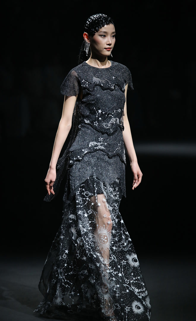 作为中国十佳时装设计师,张恩始终在东方美学的当代转化中寻找属于自己的语言。“缘起星辰”并未停留于传统符号的简单挪用,而是将东方哲思中“天人合一”的精神内核,转化为可感知的穿着体验。正如他所言,“愿每个人心中都有自己的星辰与宇宙”,时尚在此刻超越了装饰的层面,成为连接个体与广袤世界的诗意桥梁。